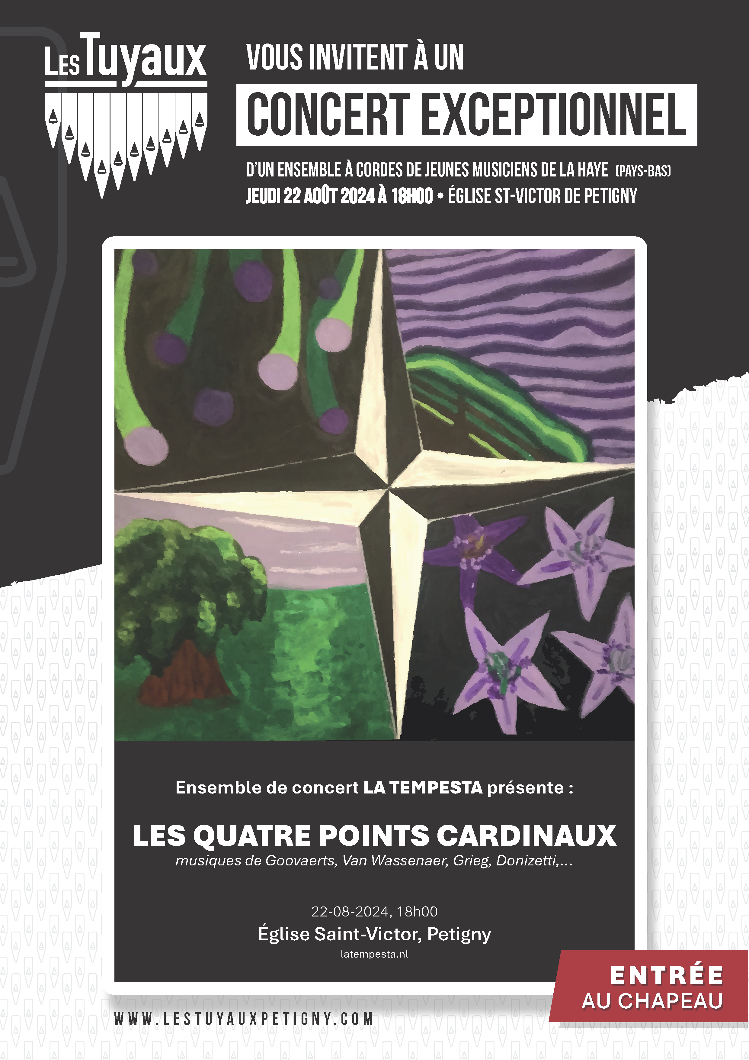 L’Ensemble de concert “La Tempesta” vous présente “Les quatre points cardinaux” avec des musiques de Goovaerts, Van Wassenaer, Grieg, Donizetti,…